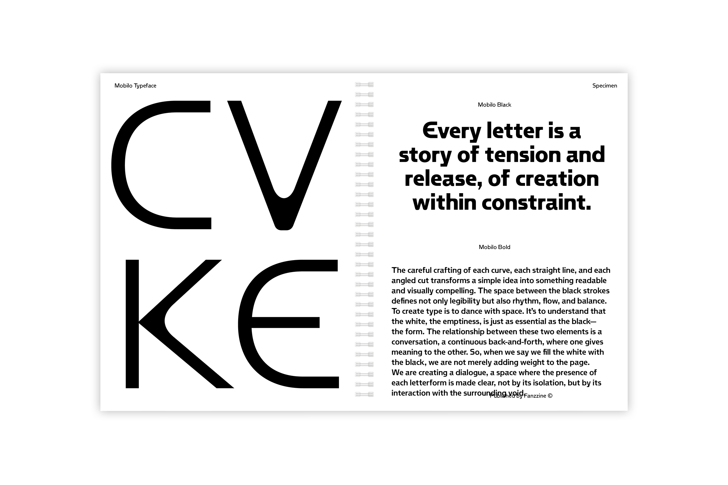 Mobilo is a font who play with the the interaction between black and white not just about contrast but as balance, presence, and absence. To “fill the white with black” is to mold the empty spaces with intention, creating forms that do not simply occupy space but define it. With some stylistic sets for bigger details.