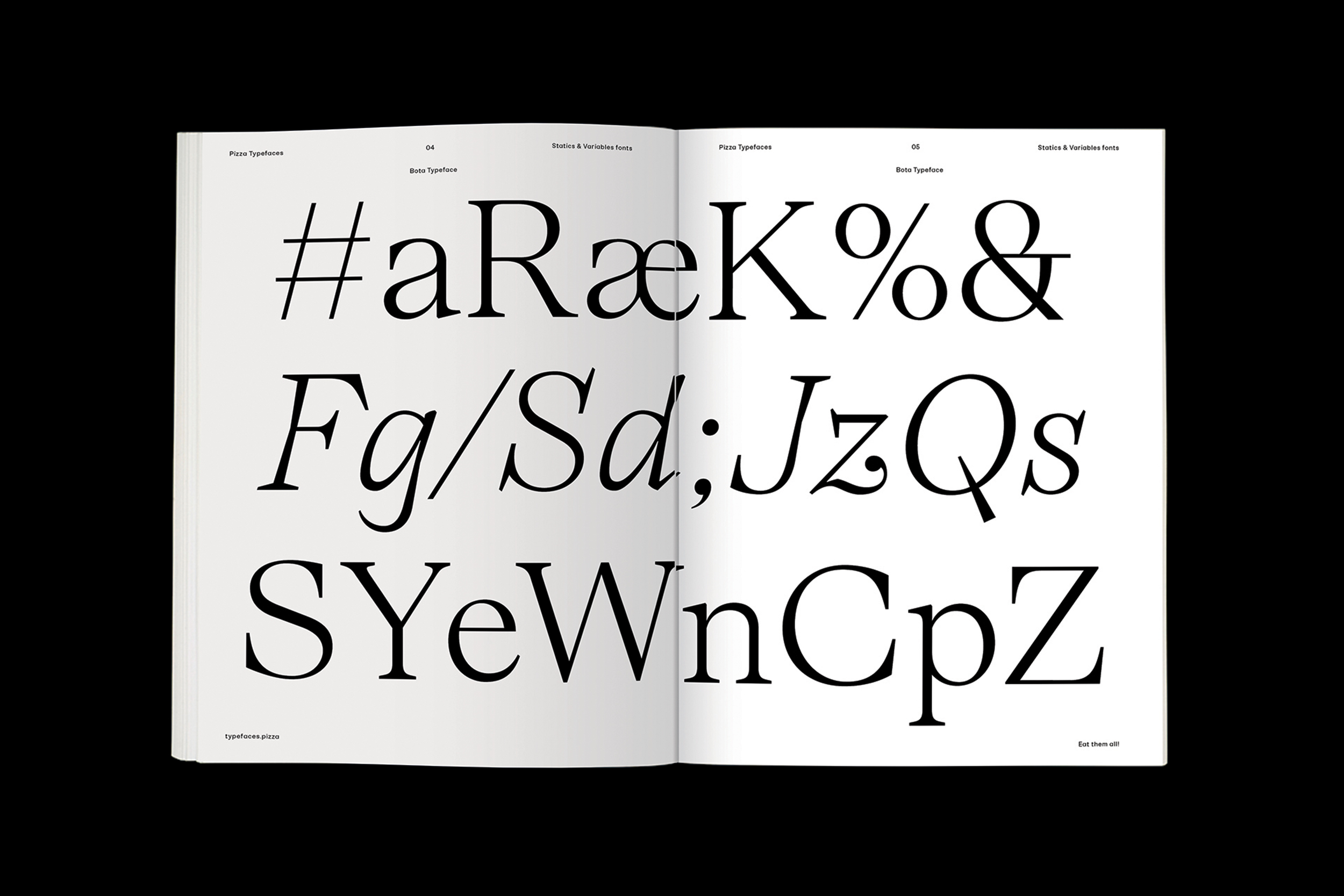 Bota typeface is a sharp serif genre. With its balanced uppercase widths from Roman capitals and calligraphic features, you can use it to stand out in upright style for an elegant look while italics are already dancing across the floor of the layout. It was originally designed for the Boissinot & Tailliez brand identity and has now expanded into a full font family. Becareful, the switch between upright and italic is brutal.