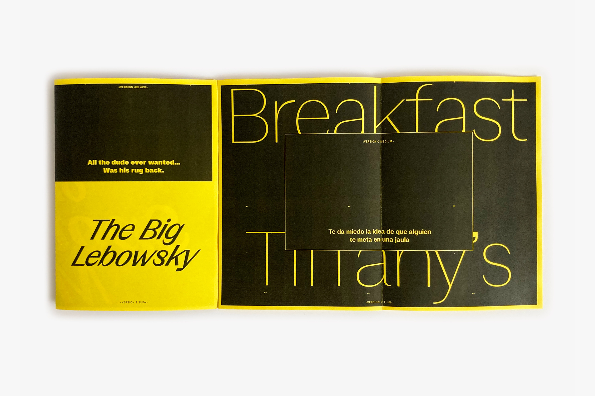 Threee families works in contrast differences from a neutral and solid sans-serif (A) to a high contrasted sans-serif typefaces (C) with a middle one, a slightly contrasted sans-serif (C). You could find some letter shape treasure in the Supa italic (actually a 30° italic) especially in the Version T 'S, s' shapes.