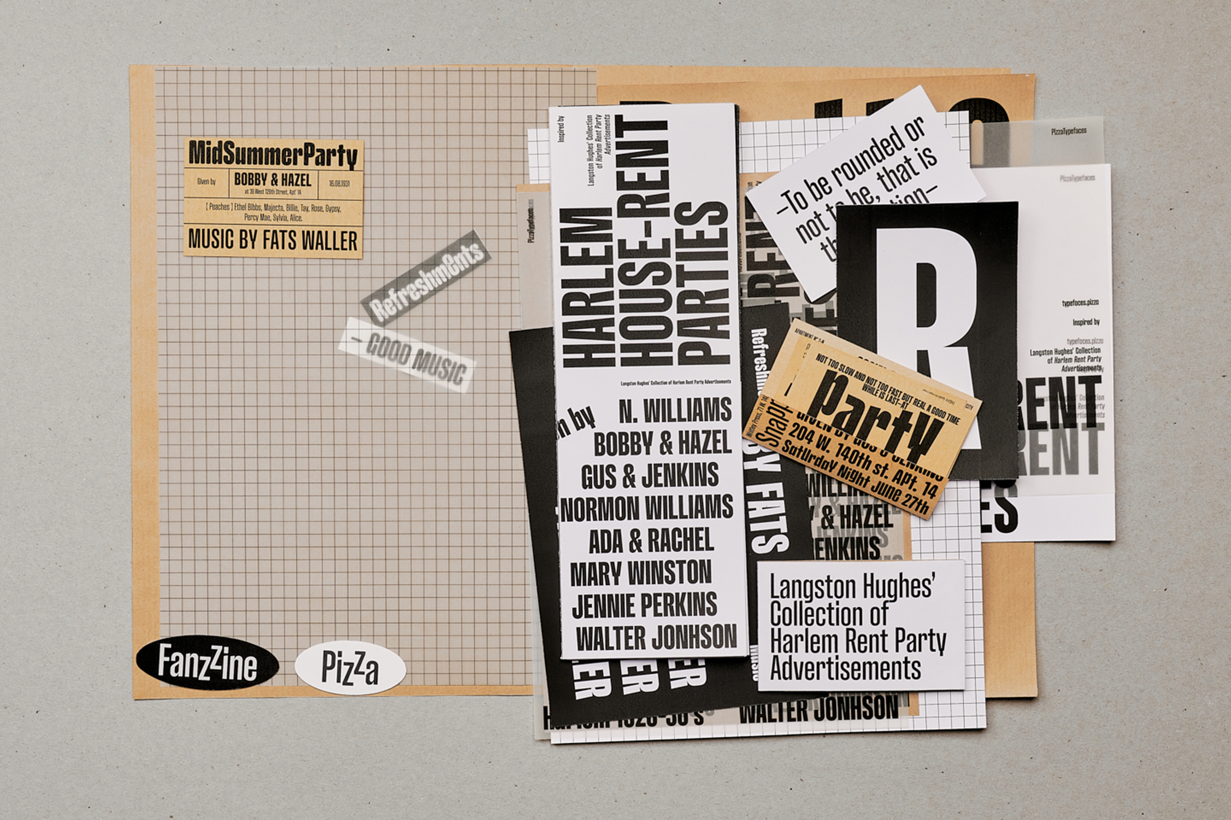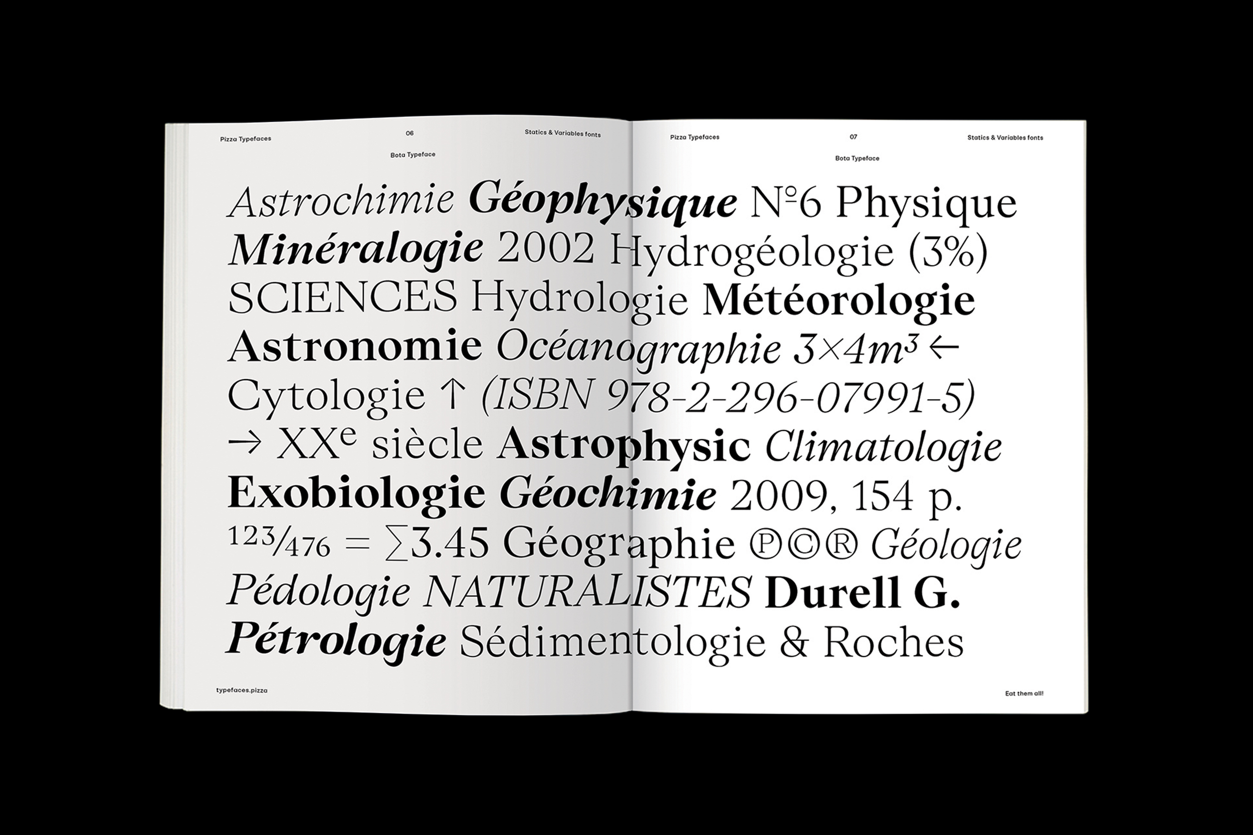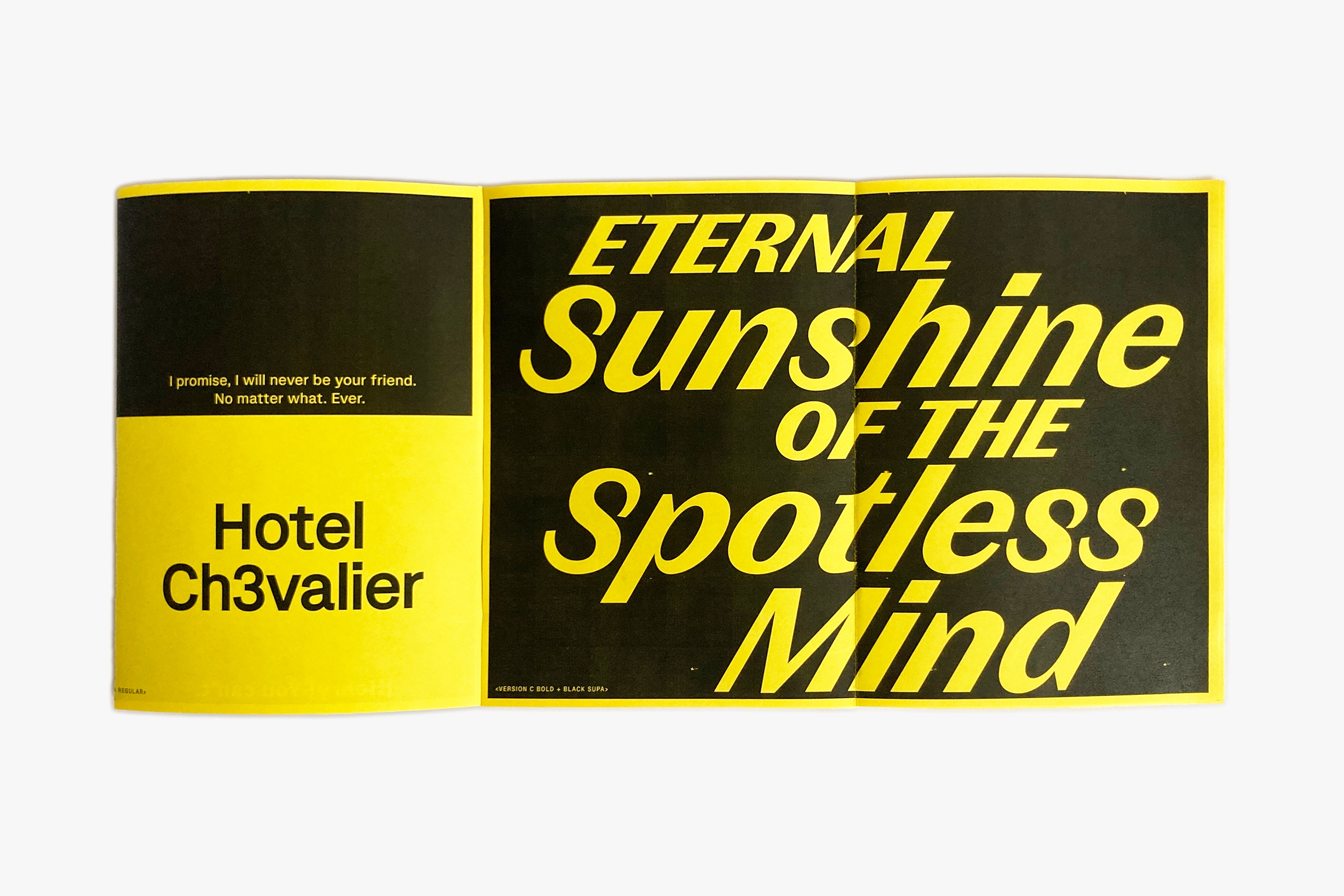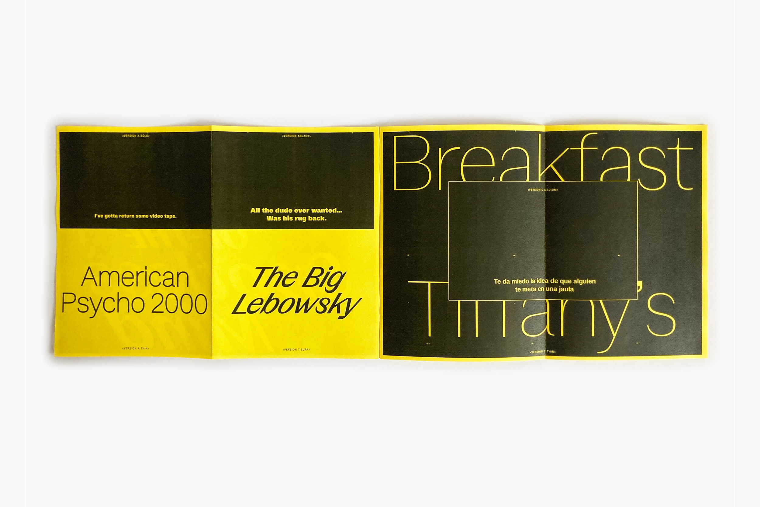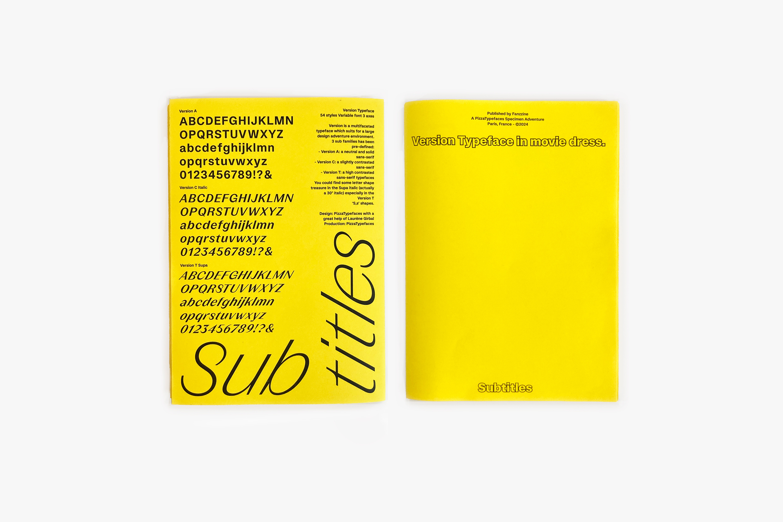 Threee families works in contrast differences from a neutral and solid sans-serif (A) to a high contrasted sans-serif typefaces (C) with a middle one, a slightly contrasted sans-serif (C). You could find some letter shape treasure in the Supa italic (actually a 30° italic) especially in the Version T 'S, s' shapes.