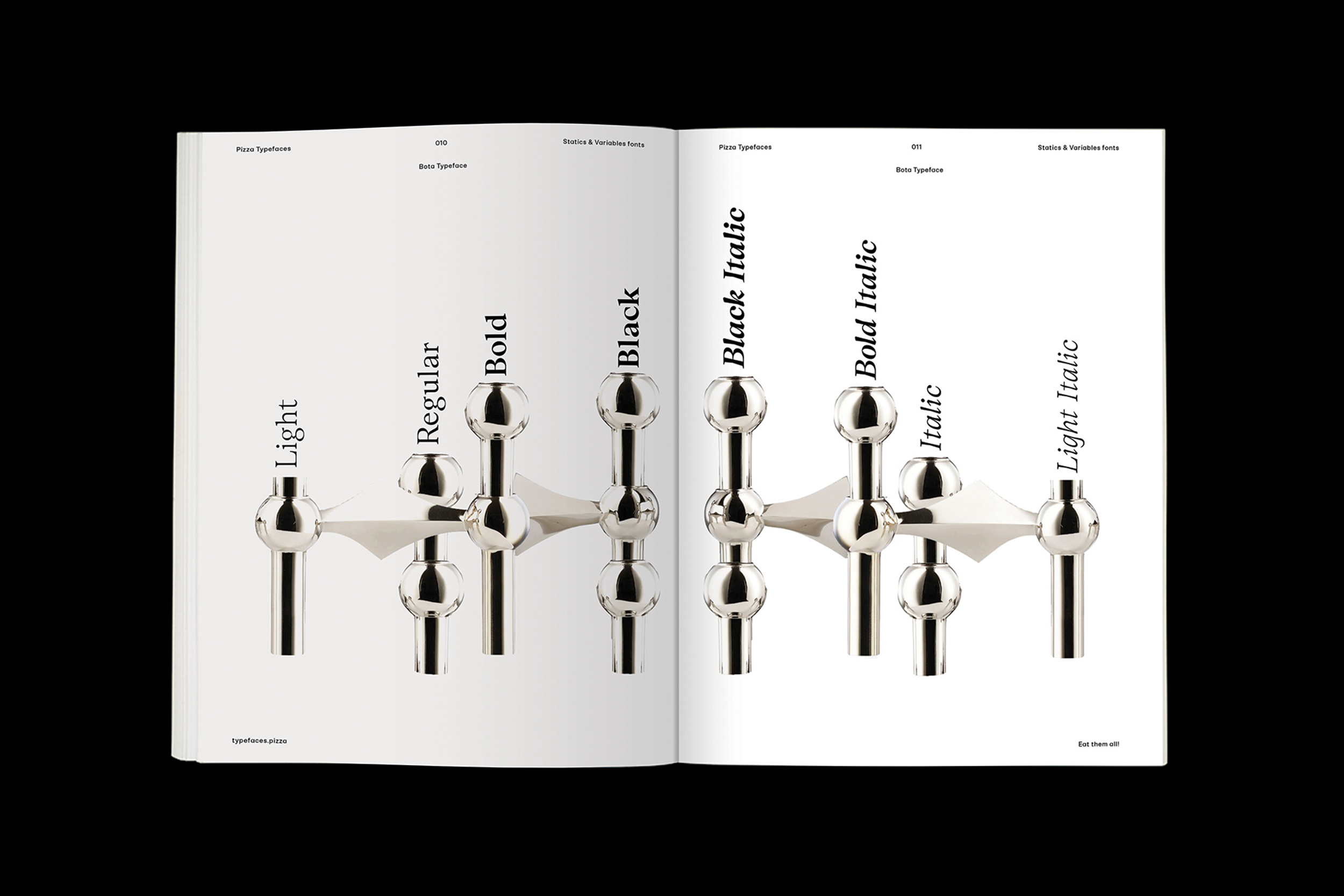 Bota typeface is a sharp serif genre. With its balanced uppercase widths from Roman capitals and calligraphic features, you can use it to stand out in upright style for an elegant look while italics are already dancing across the floor of the layout. It was originally designed for the Boissinot & Tailliez brand identity and has now expanded into a full font family. Becareful, the switch between upright and italic is brutal.