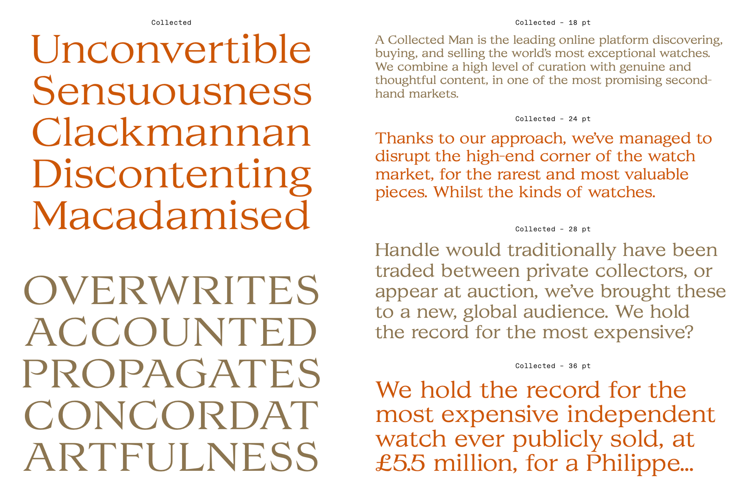 Custom font and monogram design for A Colleted Man. Through a huge ressource about watch making, history, knowledge, the creative process of this font focusing on watches features. Engraving, small elements, elegance and solidity.